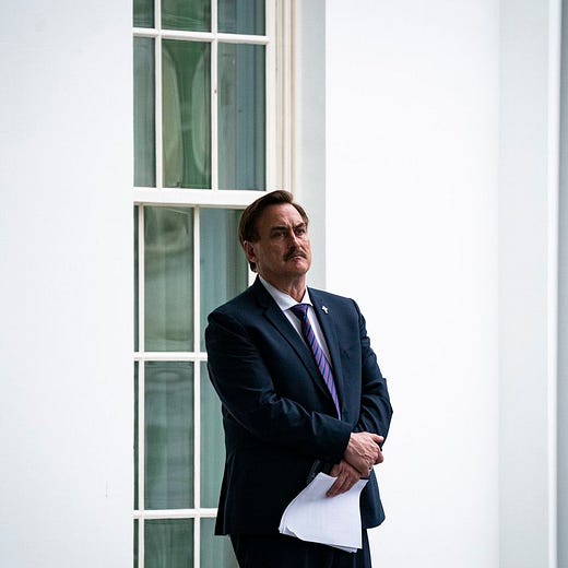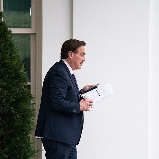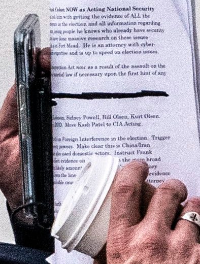 And yet it could be worse- this afternoon The MyPillow CEO, Michael Lindell, was photographed entering the White House to meet the President. His notes were captured in a photo by a Washington Post photographer. “Move Kash Patel to CIA.” “Make clear this is China/Iran.” “Martial law if necessary.” “This is raw QAnon/8kun stuff, straight to the president,” observed NBC News dystopia beat reporter Ben Collins.